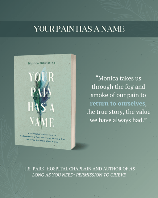 “Your Pain Has a Name is oxygen, fuel, and companionship for the journey of self-acceptance and inner peace many humans find inaccessible. In a stunningly vulnerable way, Monica DiCristina walks alongside us, inviting us to investigate our past stories and build new, healthier paths forward. With her uncanny ability to convey difficult concepts through simple, relatable examples, Monica offers liberation from the false narratives that limit our ability to live life to the fullest. This book is a gift of love.”Rachel Macy Stafford, New York Times bestselling author of Hands Free Mama, Only Love Today, and Soul Shift