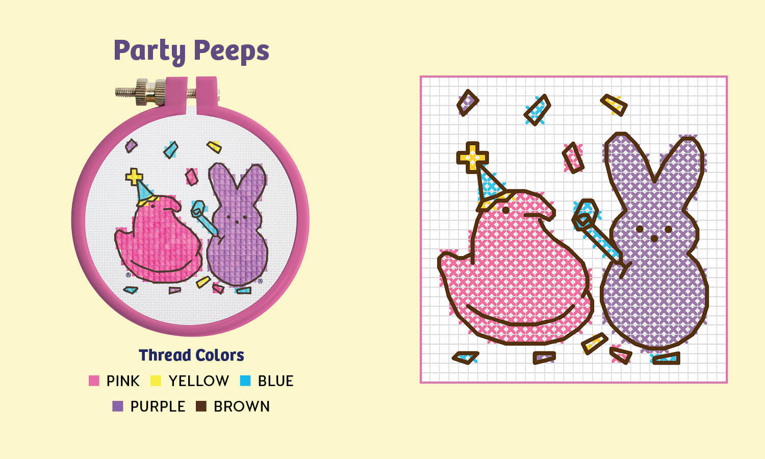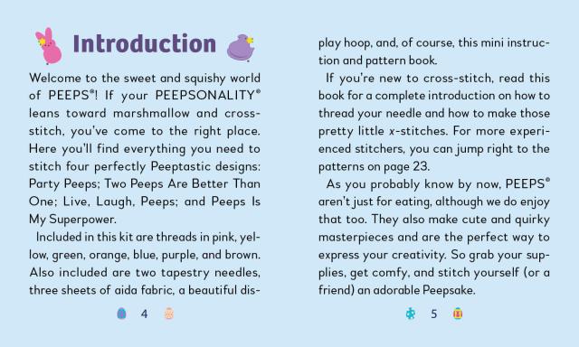 - Book Included: Fully illustrated mini book with simple cross-stitching instructions and 4 easy patterns (Party Peeps; Two Peeps Are Better Than One; Live, Laugh, Peeps; Peeps Is My Superpower)